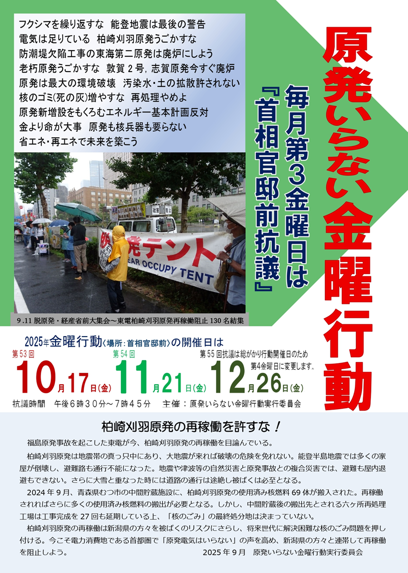「12.5老朽原発このまま廃炉!大集会in おおさか」および「10.23(美浜3号機停止日)-12.4老朽原発このまま廃炉!キャンペーン」行動を成功裏に実行し、岸田政権の出鼻をくじき、老朽原発を廃炉に追い込み、それを突破口に原発全廃を実現しましょう!